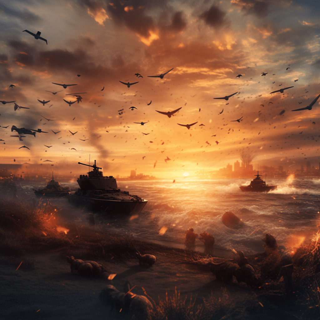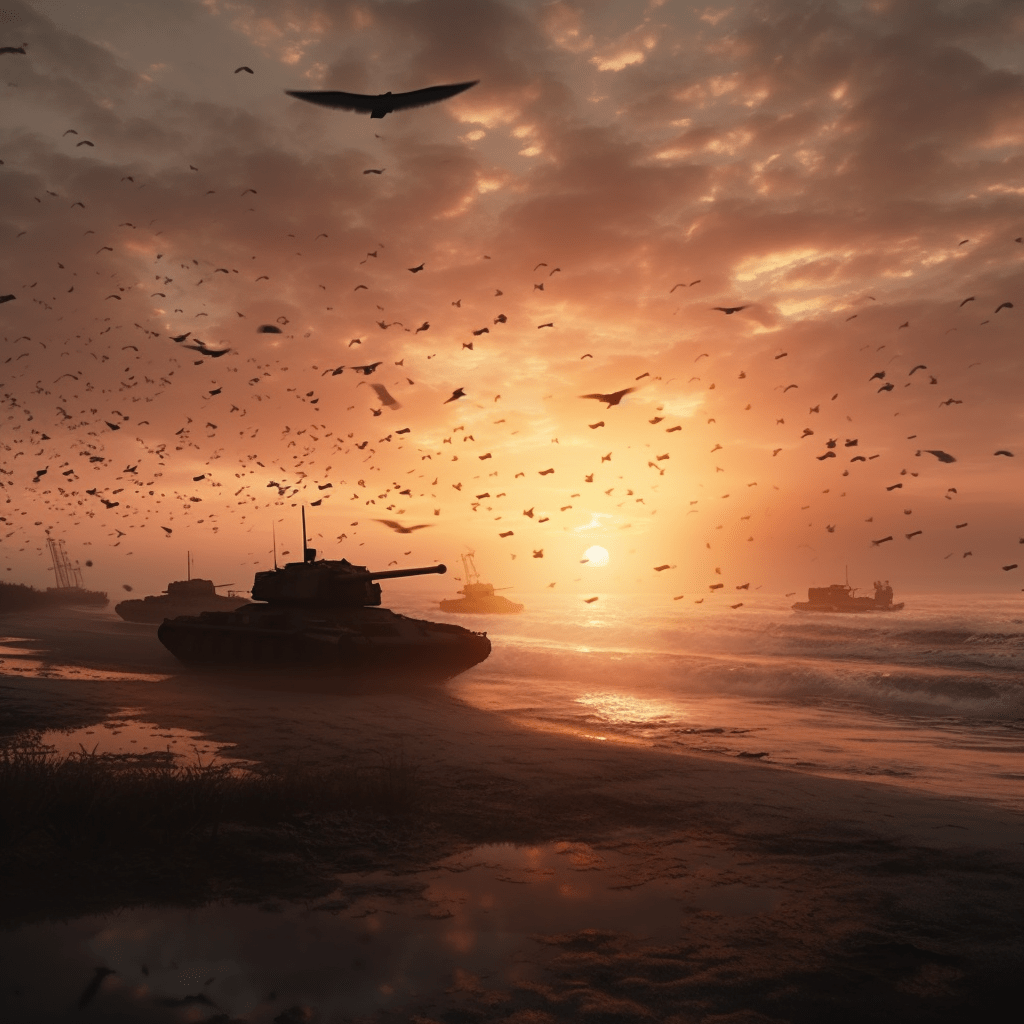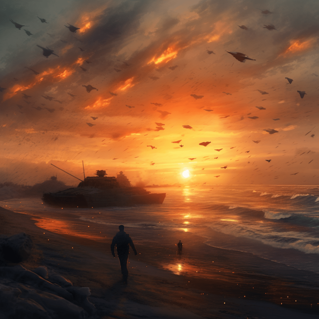 Here’s some AI art of my creation inspired by this poem. Going from war to calm.